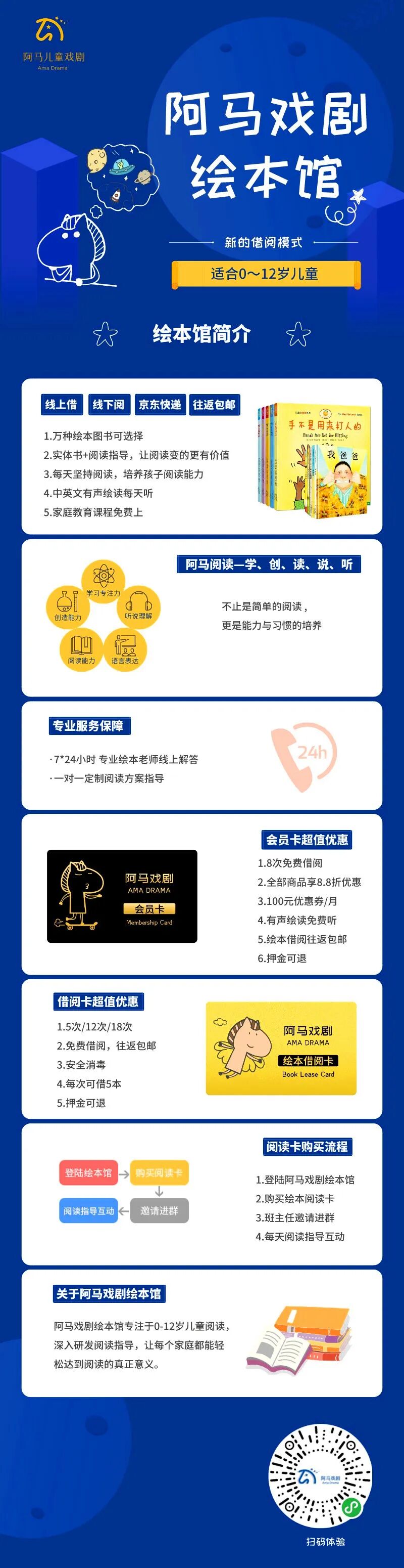 阿马戏剧线上绘本馆,一个为千万家庭提供绘本借阅与商城服务的平台,海量绘本完全可以满足0-12岁儿童的阅读需求,而且线上借阅,可以让每一个家庭以最低的成本获取最好的图书,保证孩子的阅读图书的数量和质量,也避免了孩子长大后,购买的大量儿童图书不知该如何处置的困境,经济又环保。