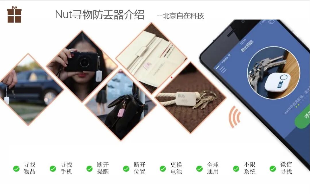 公司生产的Nut品牌系列蓝牙防丢产品畅销中国、美国、德国、法国、英国等100多个国家和地区,主要解决重要物品的寻找、防丢,如手机、钱包、钥匙、旅行箱、背包等,国内市场占有率第一。目前包括NUT3、FOCUS防丢器、P1手机防丢器、T1双子星防丢器、寻找器等适合不同场景使用的蓝牙寻物防丢产品。