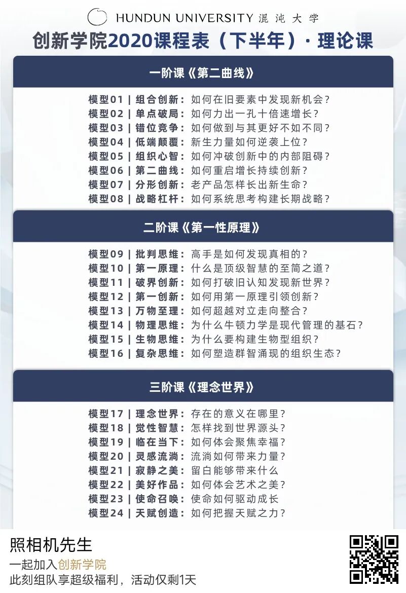 第二,每周三50节案例课,借假修真,我们理出了不同的创新企业类型,希望可以给你做一个参照。
