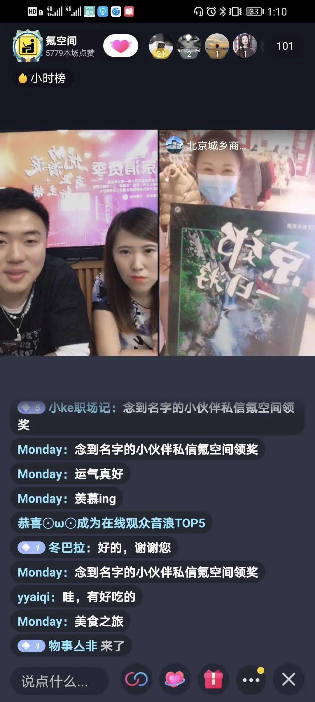 月芽科技创始人与氪空间主播一同坐镇,现场连麦北京蔓兰酒店和城乡购物中心(公主坟店),福利派送不停,直播间互动频频、欢乐多多。