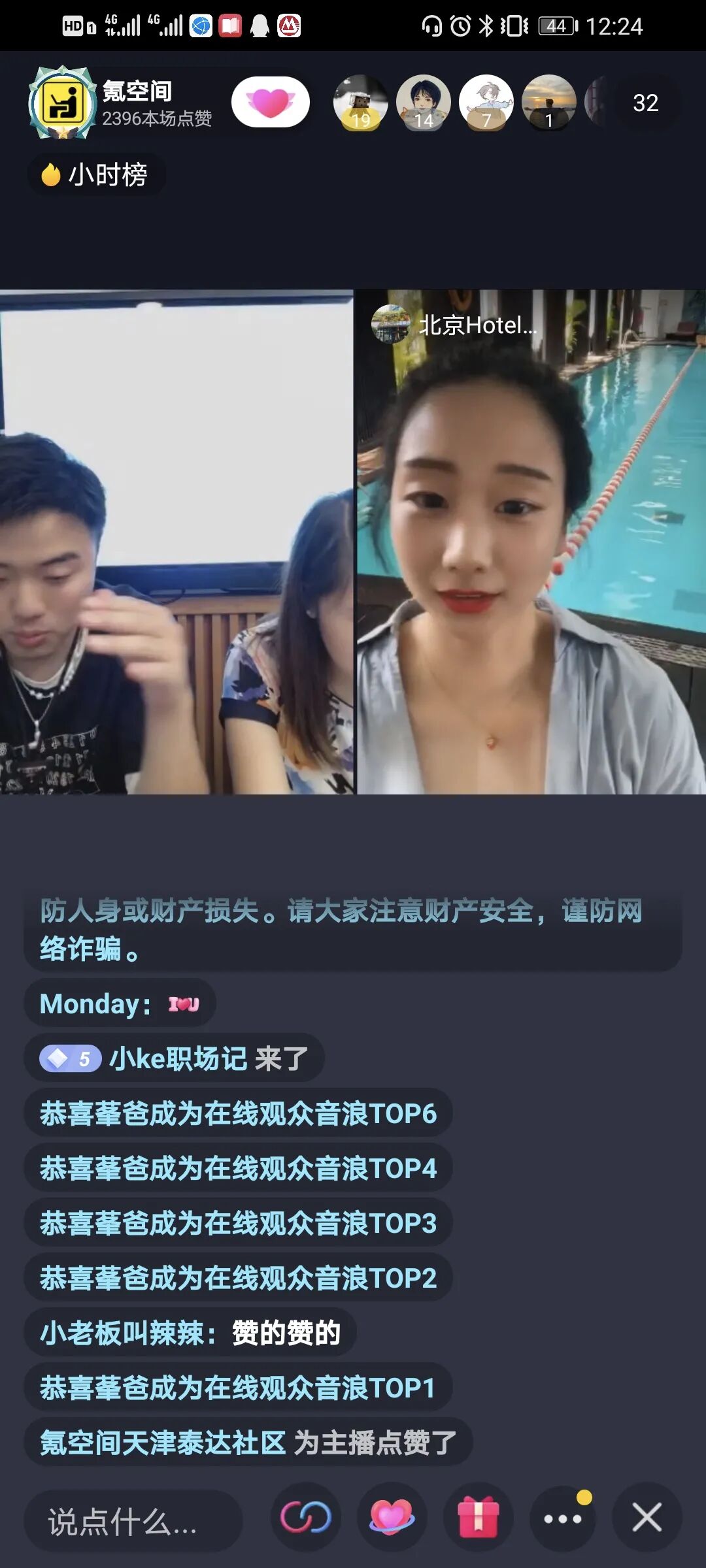简单的介绍开场后,首先连麦的是北京蔓兰酒店。北京蔓兰酒店的工作人员是一位专业且漂亮的小姐姐,她为氪空间的会员朋友们介绍了酒店特色的露天游泳池和能够俯瞰花园美景的健身房,这样棒的健身环境让互动区的朋友们甚至留言说:“我今天下午就要去体验一下!”哈哈哈,氪空间的会员朋友们就是这样欢乐和热情!