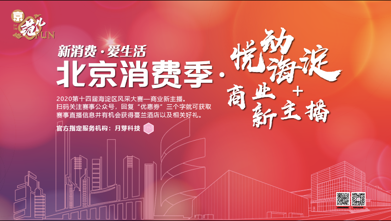 月芽科技,8月&9月“2020风采大赛—商业新主播”活动火热🔥进行中。此活动由北京市海淀区商务局主办,北京市海淀区商业联合会承办,月芽科技协办,通过商业新主播的竞赛,首次尝试大赛赛事和企业的营销活动结合!请大家关注“悦动海淀消费季”活动,活动会一直到年底,越后面越精彩。