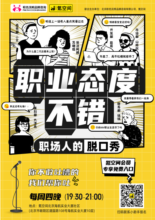 每周四,#职业态度不错#脱口秀开放麦持续上演,欢迎您来找回快乐!