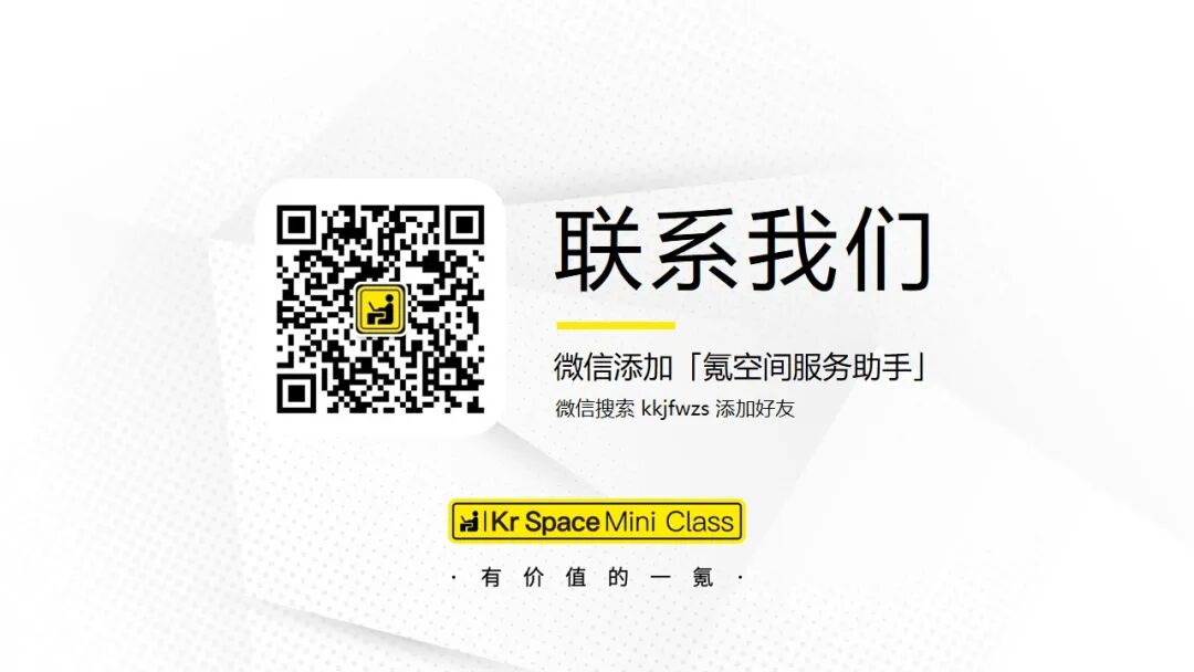 如果您在某个领域颇有研究,并有兴趣成为我们氪空间MiniClass的导师,如果您对更多营销课程感兴趣,请添加氪空间小助手微信号: